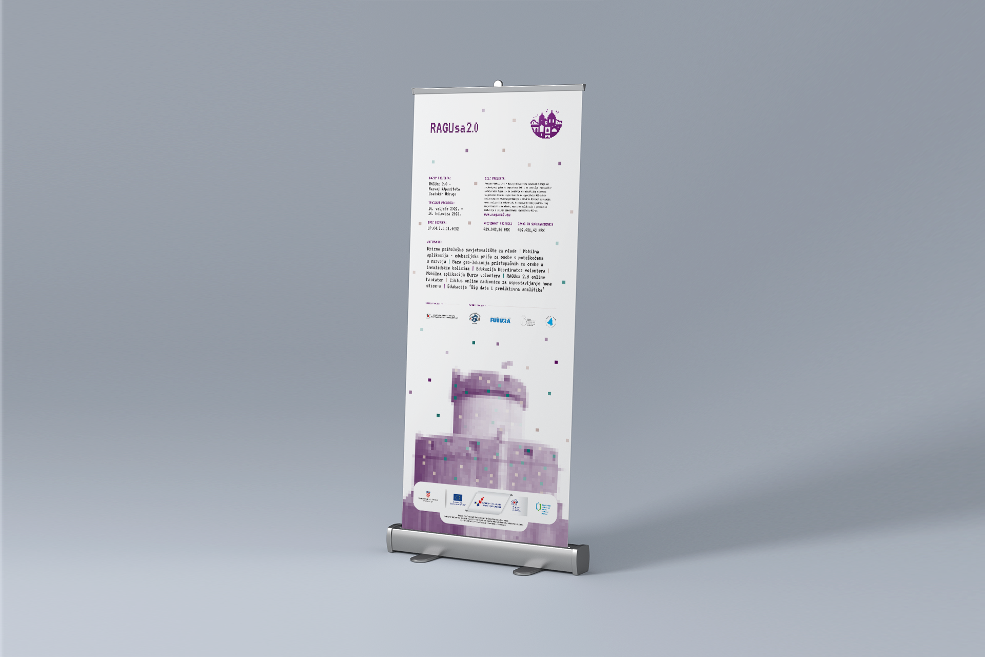 Visual identity for RAGUsa2.0 project is all about pixels and Dubrovnik old town. The goal was to connect IT and the city of Dubrovnik historically known as Ragusa.